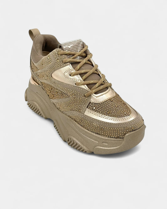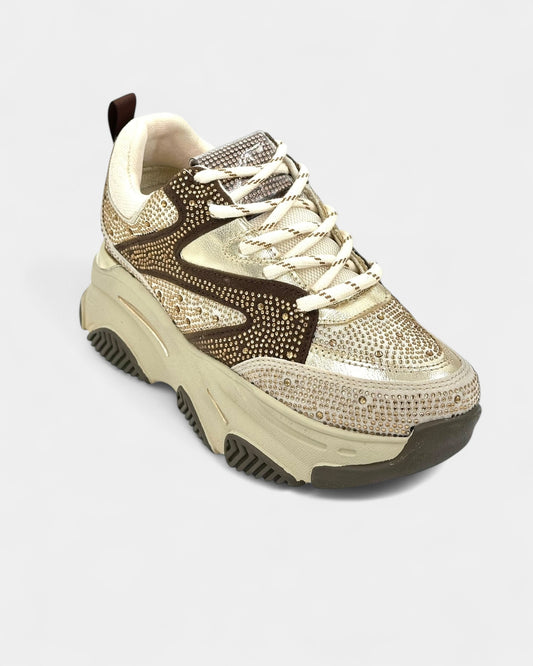 DEPORTIVO SUELA ALTA DAMA CON PEDRERÍA COLOR CAFÉ CLARO