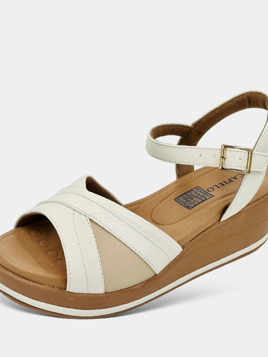 SANDALIA CONFORT CON CORREA COLOR CREMA Y BEIGE