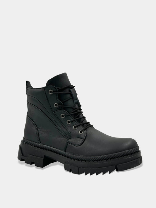BOTA DAMA DE CUERO COLOR NEGRO MATE