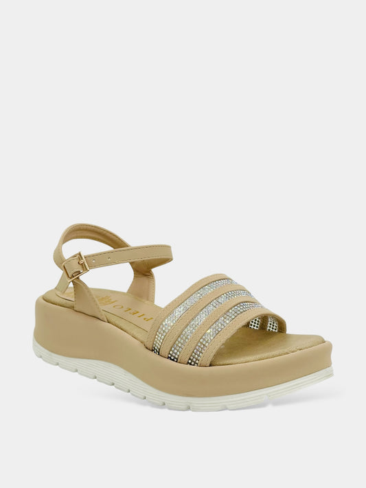 SANDALIA DAMA CONFORT COLOR CHAMPAÑA CON HEBILLA
