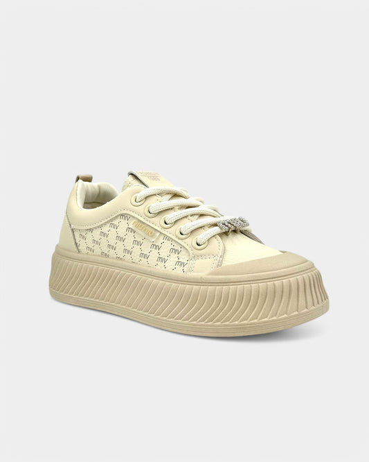 TENIS DAMA COLOR BLANCO Y BEIGE CON PEDRERÍA