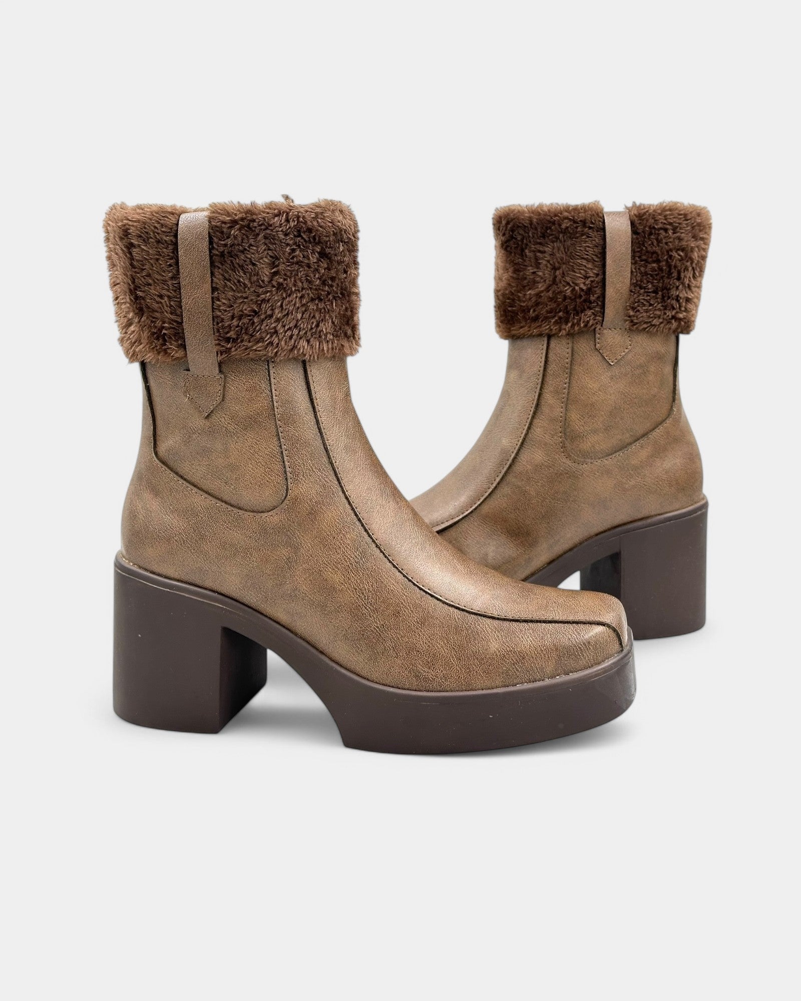 BOTAS DE TACÓN PARA DAMA COLOR CAFÉ CON AFELPADO