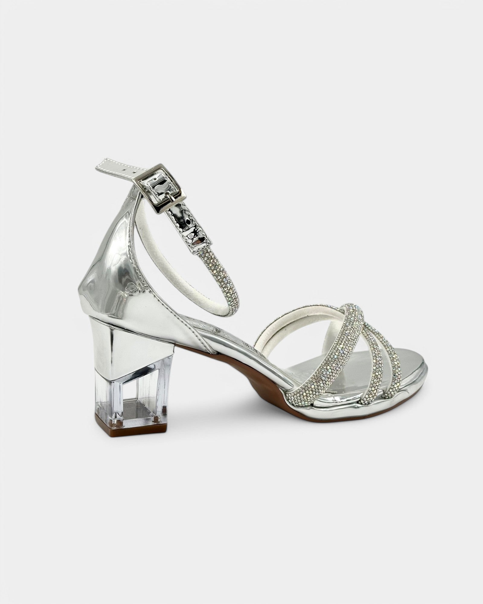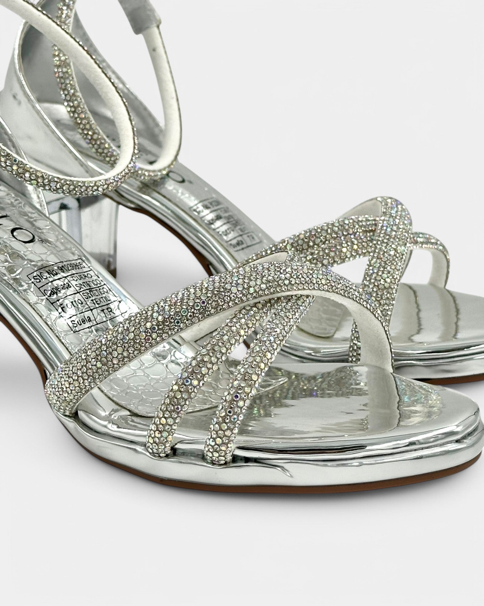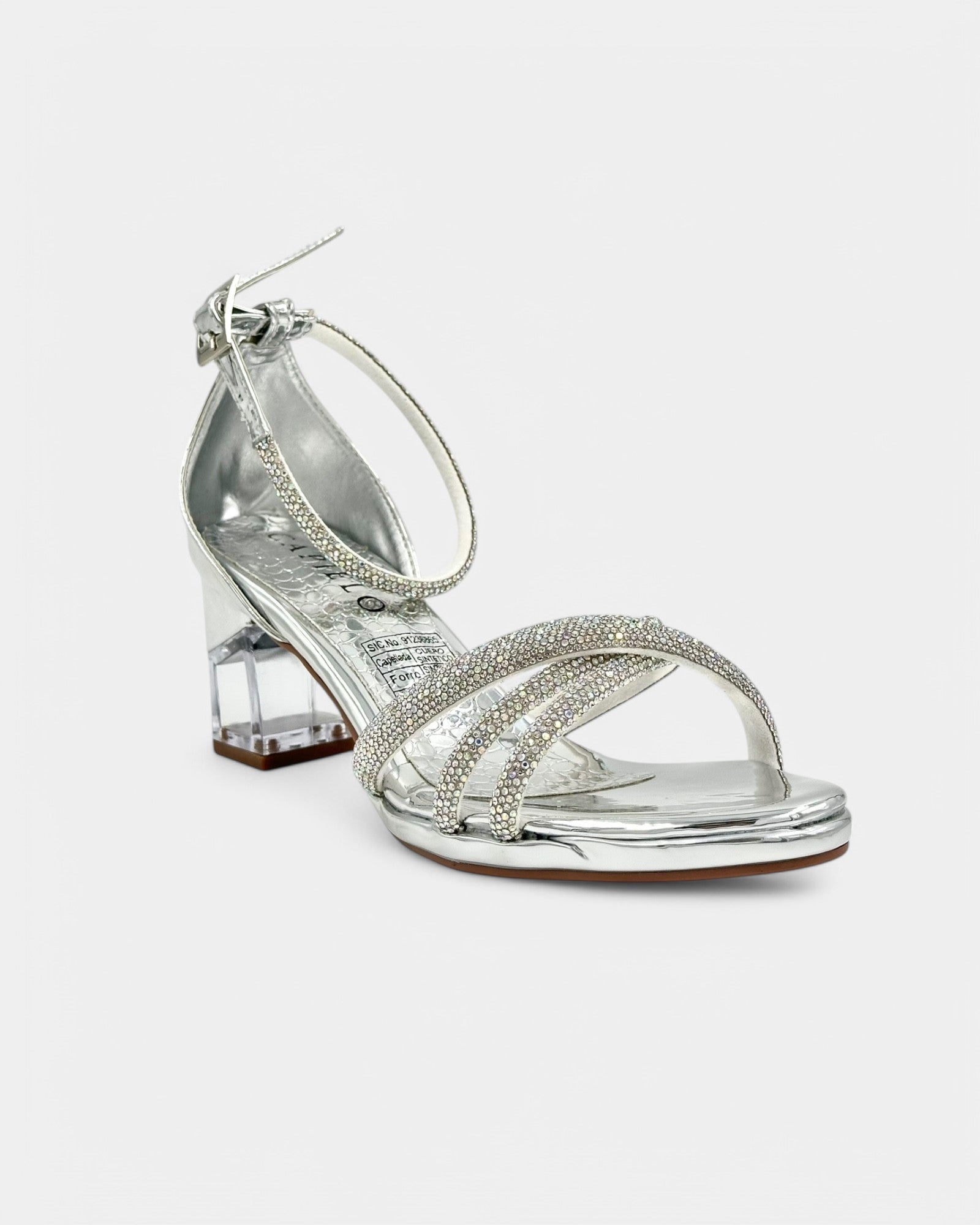 Tacón Transparente Elegancia y brillo en cada paso. Estas sandalias plateadas destacan por su diseño refinado y moderno, con correas cruzadas adornadas con delicados cristales que añaden un toque de glamour. Su tacón cuadrado transparente no solo aporta estabilidad, sino también un efecto sofisticado y vanguardista. Perfectas para eventos especiales, fiestas o noches en las que quieras deslumbrar con estilo. Con ajuste cómodo y materiales resistentes, estas sandalias combinan belleza y confort a la perfección. ¡Haz que cada paso brille con encanto! ✨👠
